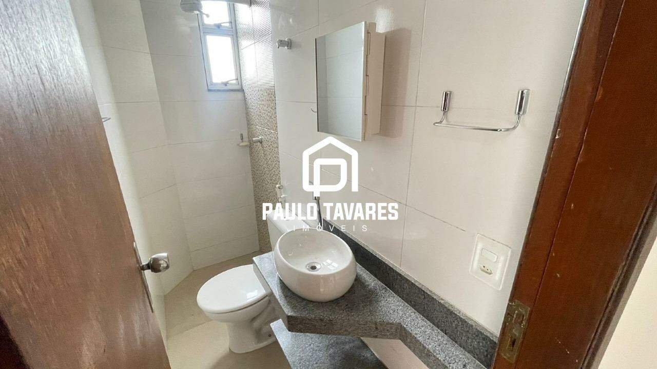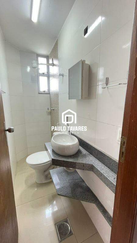 Banho social com bancada, espelho e pia em formato cuba;