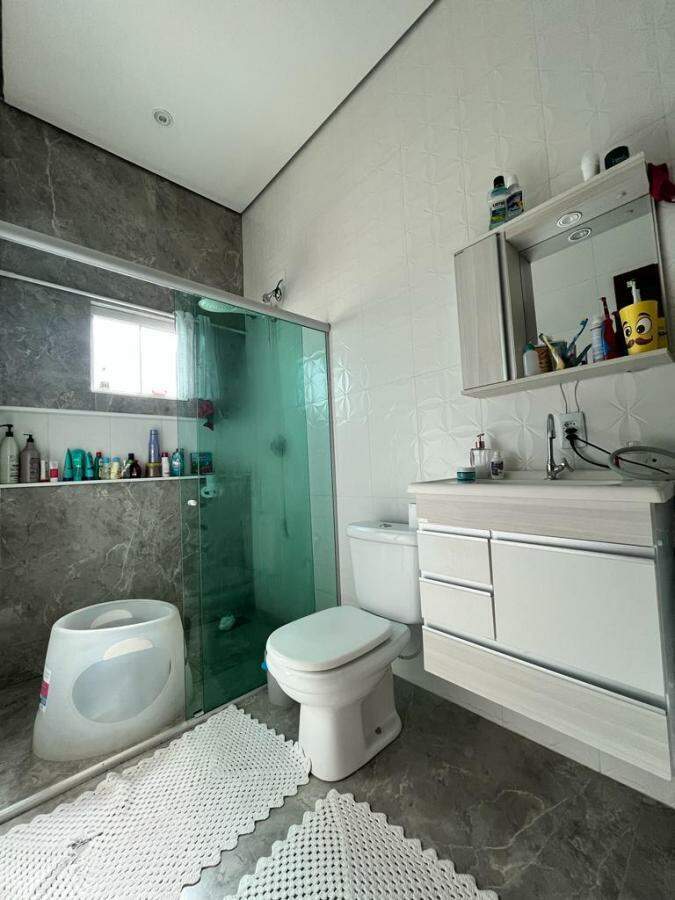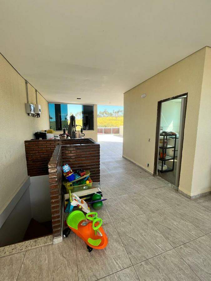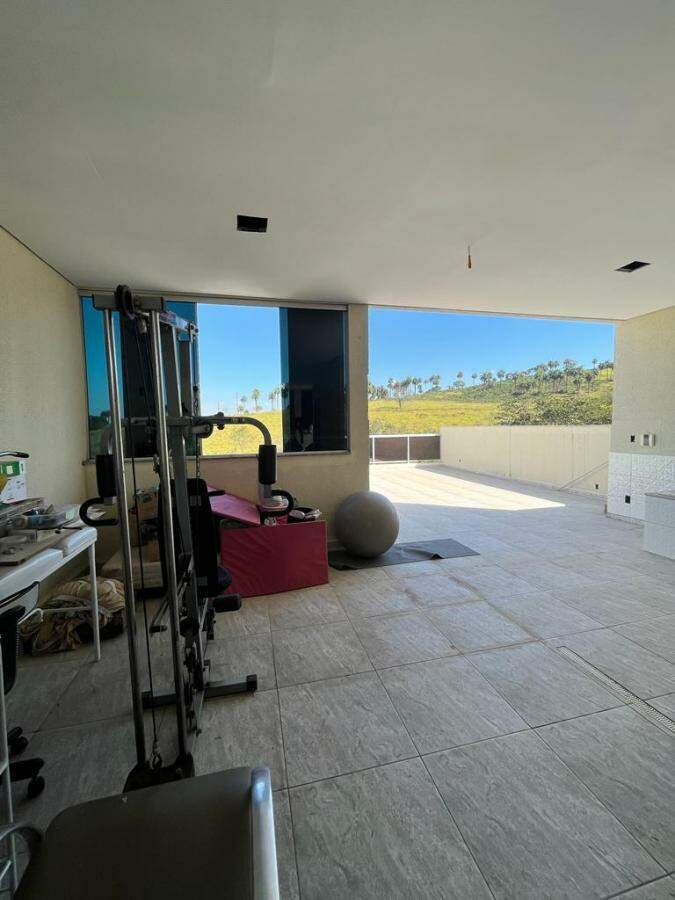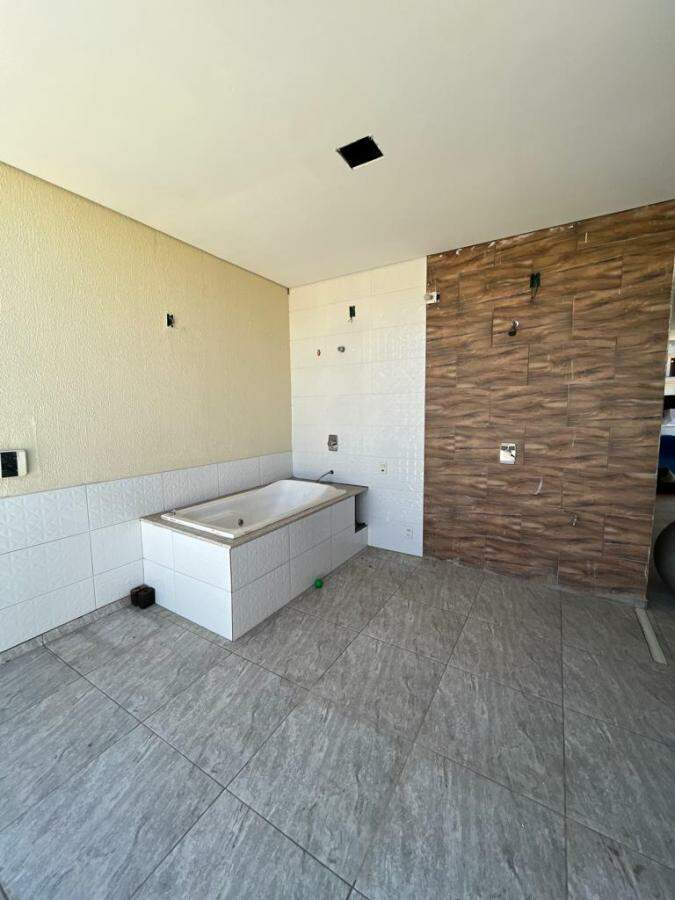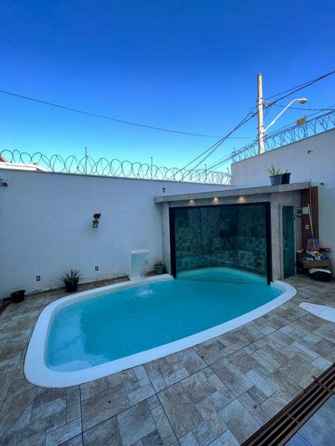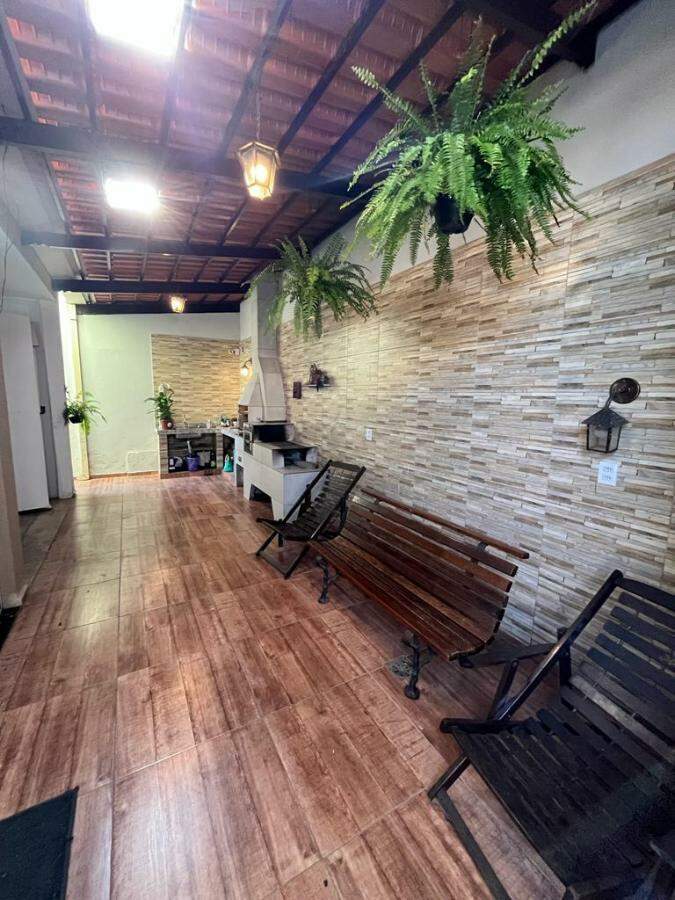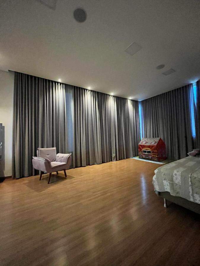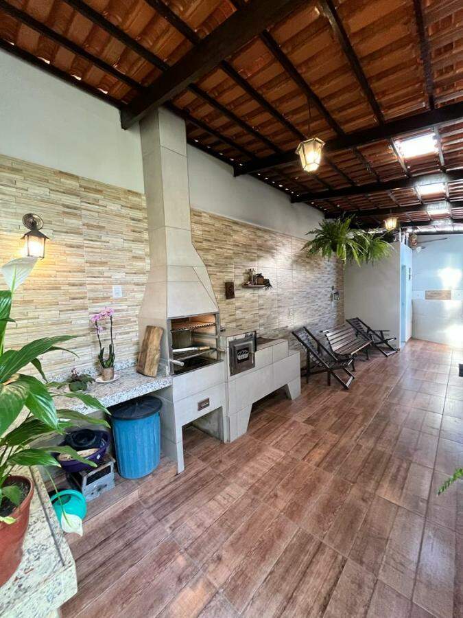 Casa com espaço gourmet com churrasqueira, forno, fogão a lenha e ducha, piscina aquecida, cascata, sauna elétrica com ducha, porteiro eletrônico por Wi-Fi.