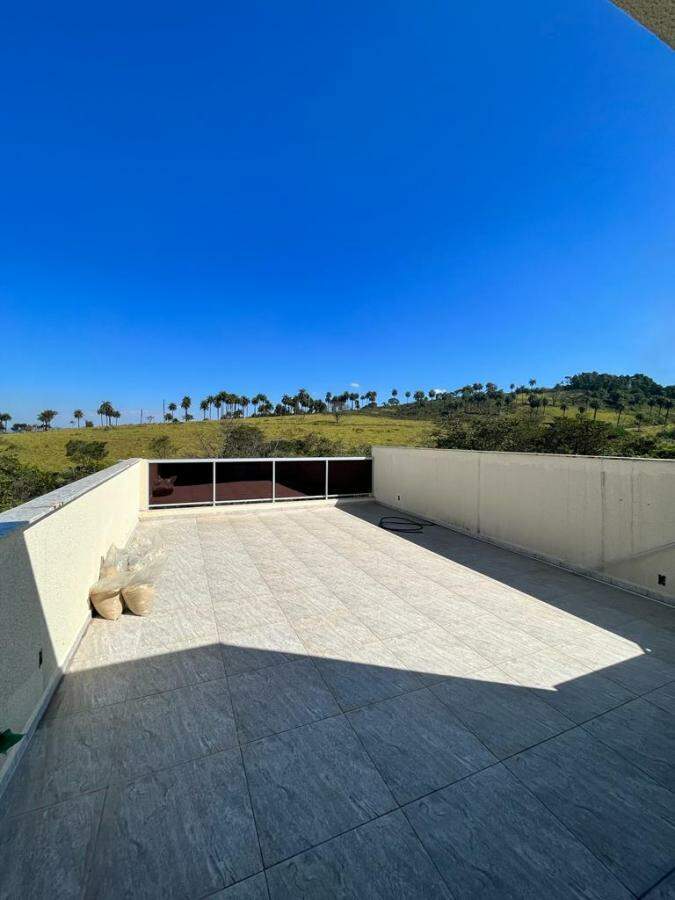 Terceiro Pavimento: Terraço com parte coberta e outra descoberta, lavanderia, cômodo para guardar objetos de serviços, 22 placas fotovoltaica gerando 800 kwh por dia, e uma linda vista para a natureza exuberante em frente ao imóvel.